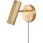Vegglampe fra Globen Lighting med et industrielt design med en rørformet, profilert lampeskjerm og detaljer i metall. Den har en lang tekstilkabel med en bryter på veggplaten.