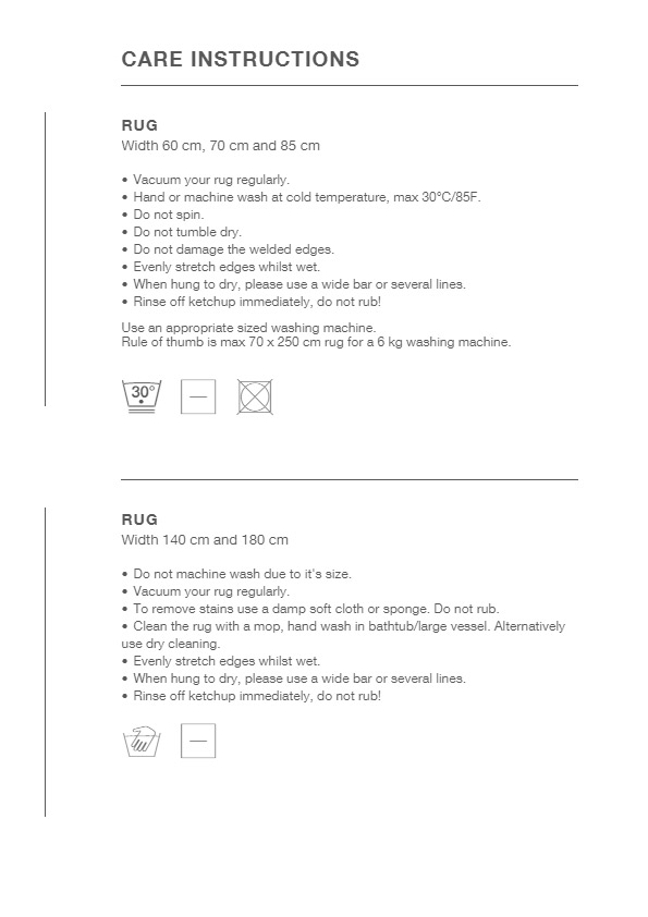 Vedlikeholdsinstruksjoner for teppet