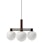 Lysekrone fra LYFA med et moderne design med inspirasjon fra den klassiske lysekronen. Den har tre lett formede lampeskjermer i opalglass med en lineær struktur i metall med dekorative detaljer.