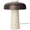 Bordlampe fra Audo Copenhagen med en interessant estetikk som umiddelbart tiltrekker oppmerksomhet. Den er laget av travertin med en skjerm i aluminium med en børstet, bronset finish. Bordlampen har en dimmerfunksjon på toppen for justering av lysstyrken. Perfekt for å plassere i et dypere vindu, på sidebordet eller på nattbordet.